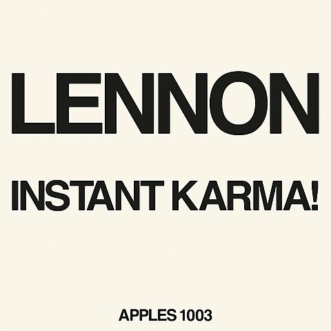 “Instant Karma” (also known as “We All Shine On”) was Lennon’s third solo single (that is, single as a non-Beatle – although George Harrison contributed electric guitar, piano and backing vocals), and the first to be a great success. It sold over a million copies in the US alone, and was a top ten hit in eleven different countries. It was also one of the quickest produced songs of all time, taking literally only ten days from recording to release (February 6 was its debut in the UK).